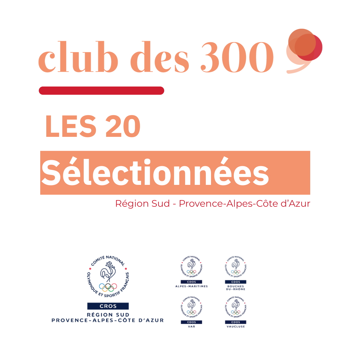 Le CROS Région Sud, aux côtés des CDOS des Alpes-Maritimes (06), des Bouches-du-Rhône (13), du Var (83) et du Vaucluse (84), sont heureux d’annoncer la sélection des 20 femmes qui intégreront la 1ère promotion du Club des 300 en Région Sud, un programme pour accompagner les femmes vers des postes a responsabilité au sein du Mouvement sportif.