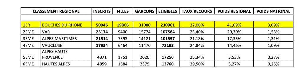 En ce qui concerne notre poids régional, nous avons un peu moins d’un point et demi de retard sur le département du Nord mais nous confirmons, comme dans d’autres domaines, que notre département assume pleinement son leadership sur notre territoire Provence Alpes Côte d’Azur.