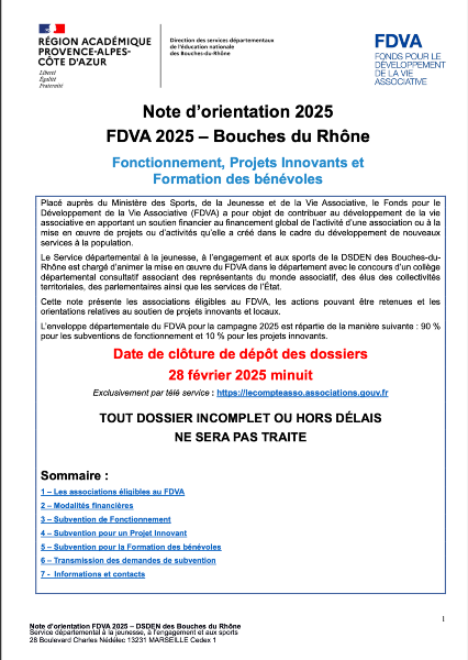 Note d’orientatipn concernant l’ouverture de la campagne de financement du FDVA (Fond de Développement de la Vie Associative)